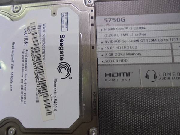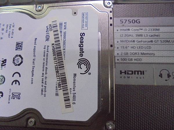 【拆出原碟】ACER宏碁Aspire筆記型電腦5750G→使用多年的筆記型電腦感覺開機速度超慢~開啟任何的檔案都要等好久→來電詢問解決辦法~到府更換SSD固態硬碟→由Aspire筆記型電腦5750G拆出的內建裸碟~新北市板橋區-王先生【Seagate希捷500GB】