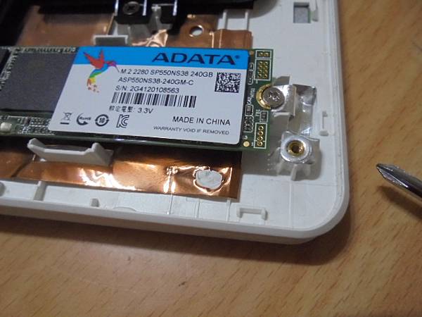 【NB改硬碟】WD威騰BLUE藍標SLIM硬碟1TB 7mm~Lenovo聯想ideapad 700-15ISK內建裸碟→開機使用時不明原因出現磁碟未配置~要救回公司RD研發部門的檔案資料→取十字起子鬆開固定螺絲~新北市新莊區-李先生【拉出ADATA威剛SP550NS38硬碟240GB】