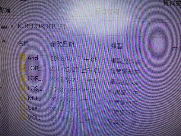 【宅配檢測】SONY索尼ICD-UX543F~4GB錄音筆錄有重要的錄音檔案→連接PC讀取檔案時~發現USB接頭無法讀取裝置與充電→要改接錄音筆回復傳輸檔案與正確充電~本機>IC RECORDER(F:)列表顯示七個檔案資料夾→臺中市西屯區-葉先生【ICD-UX543F】