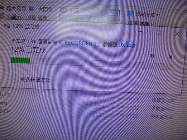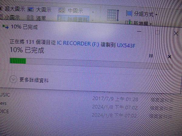 【確認原因】SONY索尼ICD-UX543F~4GB錄音筆錄有重要的錄音檔案→連接PC讀取檔案時~發現USB接頭無法讀取裝置與充電→要改接錄音筆回復傳輸檔案與正確充電~正在將131個項目從IC RECORDER(F:)複製到UX543F→臺中市西屯區-葉先生【73%已完成】 - 2024: