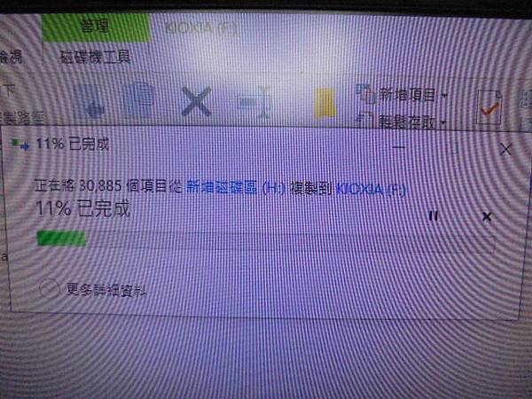 【救出檔案】SanDisk晟碟Ultra Fit→128GB隨身碟USB 3.2存有公司工作檔案~週四正確讀取週五讀不到裝置→多部電腦測試都讀不到隨身碟~已救回工作檔案資料→正在將30885個檔案由新增磁碟區(H:)複製到KIOXIA(F:)~臺北市後港街-陳先生【29%】