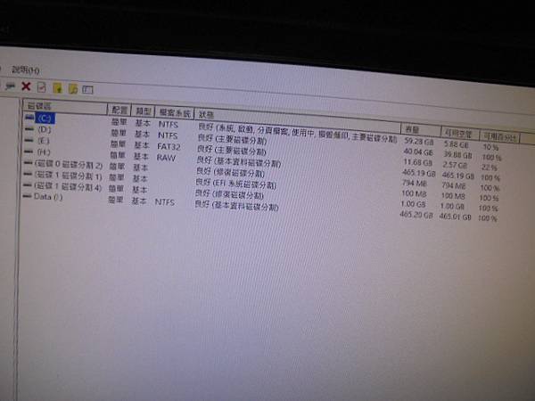 【LINE通知】Seagate希捷1TB→3.5吋SATA裸碟是acer宏碁Aspire TC-780桌上型電腦內建硬碟~當機重開後就進不去作業系統→要修復Windows 10作業系統回復使用~點進存放裝置磁碟管理→新北市板橋區-李主任【磁碟區(H:)RAW/磁碟區Data(I:)NTFS】