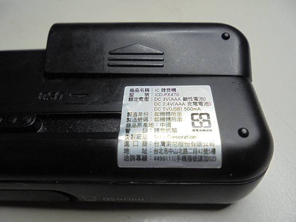【功能正常】SONY索尼ICD-PX470→4GB錄音筆使用兩顆電池~錄音筆長期未做使用卻忘記將電池拔出→再找出要使用時卻無法開機~已修好回復正常使用與取出音檔→再把電池槽上蓋滑入並扣緊機身~南投縣埔里鎮-賴先生【SONY索尼ICD-PX470錄音筆】