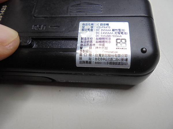 【功能正常】SONY索尼ICD-PX470→4GB錄音筆使用兩顆電池~錄音筆長期未做使用卻忘記將電池拔出→再找出要使用時卻無法開機~已修好回復正常使用與取出音檔→翻回正面滑動電源鍵開機~南投縣埔里鎮-賴先生【SONY索尼ICD-PX470錄音筆Power On】