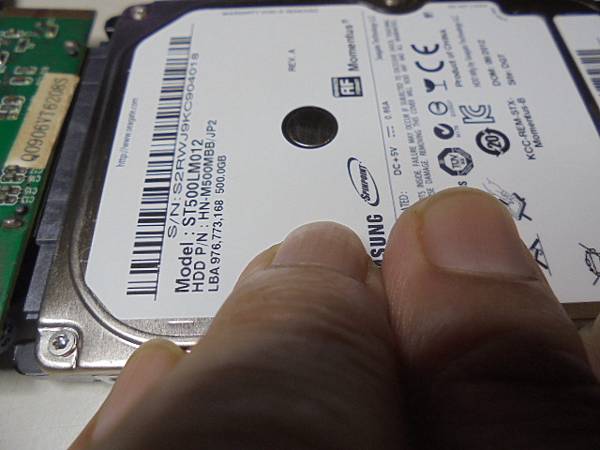 【立即送測】BUFFALO巴比祿HD-PCTU3~500GB外接式硬碟連接桌上型PC讀取→突然硬碟磁區消失不見~換過其他電腦仍讀不到硬碟→想要救回硬碟中的美工圖檔作業~手指觸摸SAMSUNG三星ST500LM012裸碟→新北市板橋區-曹先生【明顯感覺碟片並未轉動】