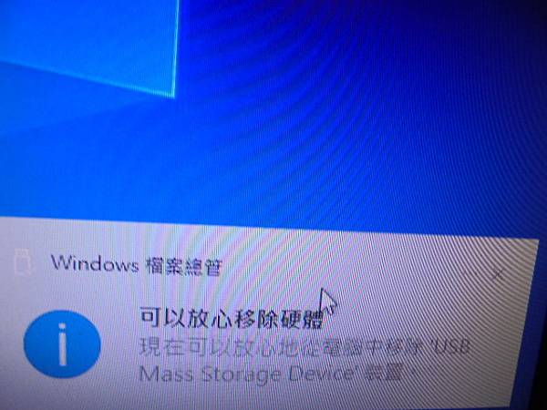 【滿意取回】TOSHIBA東芝1TB~3.5吋7200轉裸碟是營業場所的PC使用→於正常使用時突然自動關機~押電源鍵重新開機後進不去作業系統→要救回公司重要檔案資料~於狀態列點選顯示隱藏的圖示→新北市土城區-黃先生【狀態列已經彈出USB裝置符號】