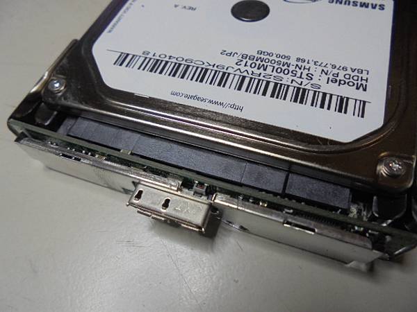 【判定問題】BUFFALO巴比祿HD-PCTU3~500GB外接式硬碟連接桌上型PC讀取→突然硬碟磁區消失不見~換過其他電腦仍讀不到硬碟→想要救回硬碟中的美工圖檔作業~確認SAMSUNG三星500GB裸碟含轉接模組對準出孔→新北市板橋區-曹先生【置回金屬上蓋】