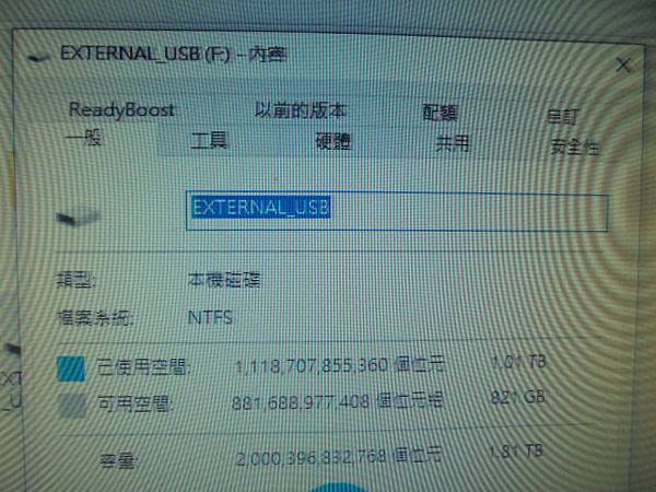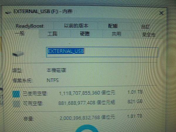 【客戶公司】DELL戴爾Inspiron 13 5000筆記型電腦→P114G於開機使用時感覺溫度過高~導致執行某些程式時會卡頓→但不瞭解是什麼原因~要解決溫度過高的問題→EXTERNAL_USB已使用空間1.01TB可用空間821GB~新北市新莊區-李先生【容量1.81TB】