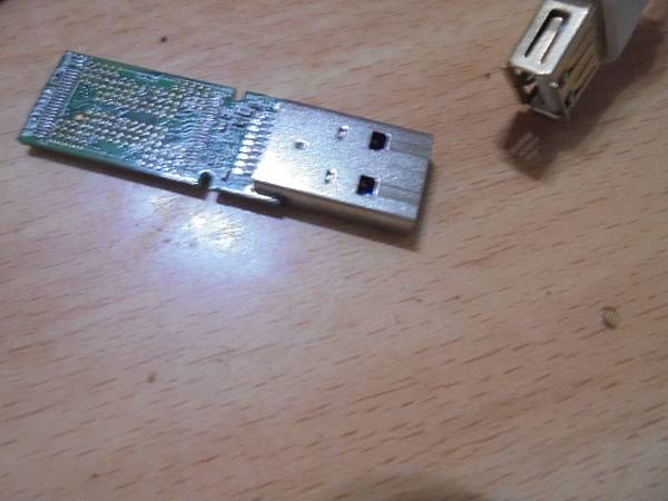 【救出檔案】SONY索尼4GB~ICD-UX533F錄音筆先前均為正常傳輸檔案→把USB接頭插上電腦沒出現磁碟機~導致取不出檔案→要救出錄音檔案~要修好不能傳輸問題→把自製USB排線FFC治具接線的USB端~南投縣埔里鎮-賴先生【接上連接PC的USB延長線】