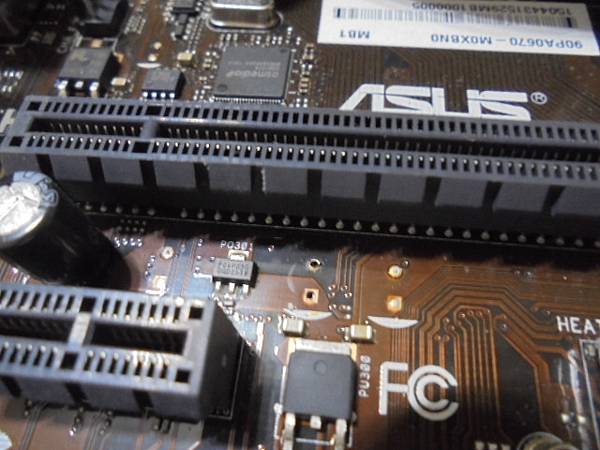 【電解電容】ASUS華碩H61M-AG2/M32AA1/DP_MB→主機板是使用多年的電腦~未曾關機的進銷存主機→近日當機頻繁拆殼發現電解電容突起~要更換電容再使用主機板→先插入PCI-E插槽旁位置~新北市板橋區-薛先生【第1顆全新的820uF 6.3V電解電容】