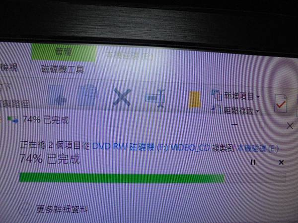【來電詢問】民國81年4月23日拍攝迎娶與婚宴的錄影帶→已於民國92年11月16日委由其他業者~轉為MPEGAV視訊檔案燒錄為VCD光碟片→要轉為MP4視訊檔案上傳雲端~複製到本機磁碟(E:)74%→新北市中和區-吳小姐【正在將2個項目從DVD RW磁碟機(F:)】