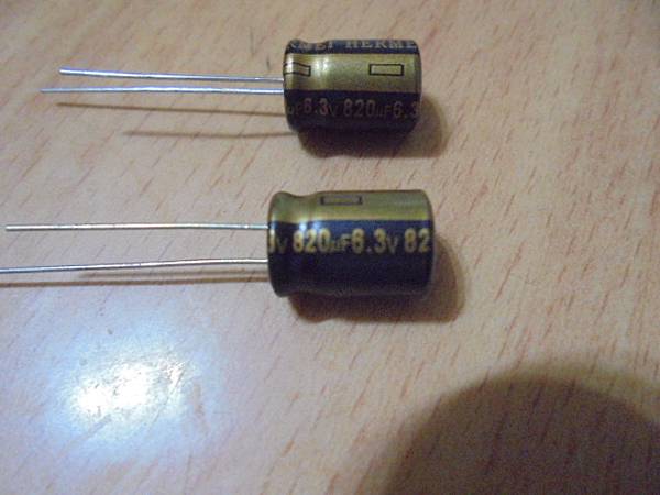 【送來更換】ASUS華碩H61M-AG2/M32AA1/DP_MB~主機板是使用多年的PC→未曾關機的進銷存主機~近日當機很頻繁拆殼發現電解電容突起→換電解電容再使用主機板~分別對好正負極插入主機板位置→新北市板橋區-薛先生【2顆全新820uF 6.3V電解電容】