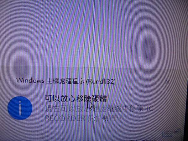 【救出檔案】SONY索尼4GB~ICD-UX533F錄音筆先前均為正常傳輸檔案→把USB接頭插上電腦沒出現磁碟機~導致取不出檔案→要救出錄音檔案~要修好不能傳輸問題→滑鼠點擊退出IC RECORDER(F:)~南投縣埔里鎮-賴先生【彈出可以放心移除硬體視窗】