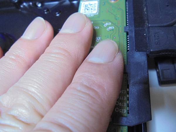 【維修接口】WD威騰6TB裸碟3.5吋→裸碟當資料碟插入硬碟座讀取使用~平時放在一米高度的桌面→0403地震時由桌面掉落地毯的地面上~導致7Pin接口塑膠片折壞→手指觸摸裸碟的電路板位置~新北市中和區-林先生【確認碟盤雖有轉動但轉動並不正確】