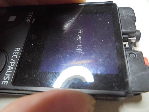 【同意更換】SONY索尼ICD-UX560F→4GB錄音筆是課程錄音~使用多年後錄音筆螢幕字體變淡→已淡化到幾乎看不見螢幕字體~影響到工作的使用→已更換錄音筆螢幕~滑動SONY索尼ICD-UX560F錄音筆電源鍵關機→高雄市岡山區-張小姐【顯示Power Off】