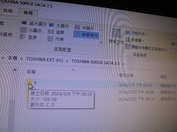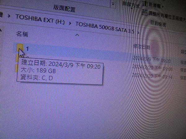 【救出檔案】TOSHIBA東芝500GB~7200轉3.5吋裸碟是公司進銷存電腦使用→正常使用時突然自動關機~重新開機後C槽D槽消失/未初始化磁碟→要救回進銷存檔案資料~資料夾1大小189GB內含C/D資料夾→新北市鶯歌區-潘先生【磁碟C槽/磁碟D槽的檔案】