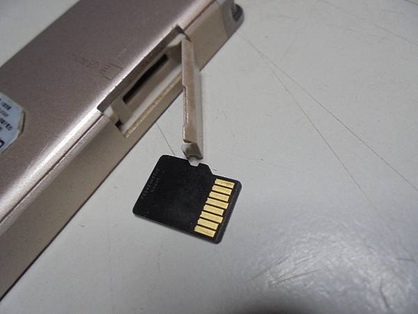 【拆殼檢測】SONY索尼ICD-UX560F→4GB錄音筆先前正常使用~插上USB接孔無充電反應→接上電腦亦讀不到裝置~自行將錄音檔案取出→要修好不能充電與傳輸問題~摳開保護蓋→新北市新莊區-盧先生【下壓TOSHIBA東芝Micro SDHC記憶卡彈起後做拉出】