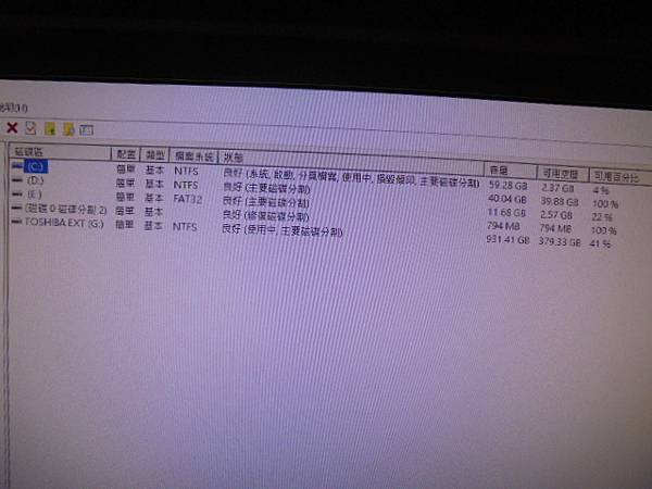 【檔案完整】TOSHIBA東芝500GB~7200轉3.5吋裸碟是公司進銷存電腦使用→正常使用時突然自動關機~重新開機後C槽D槽消失/未初始化磁碟→要救回進銷存檔案資料~滑鼠點進存放裝置磁碟管理→新北市鶯歌區-潘先生【磁碟區TOSHIBA EXT(G:)NTFS】