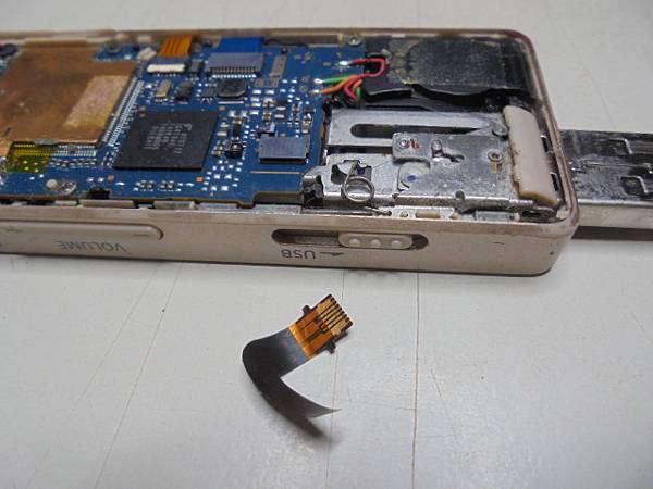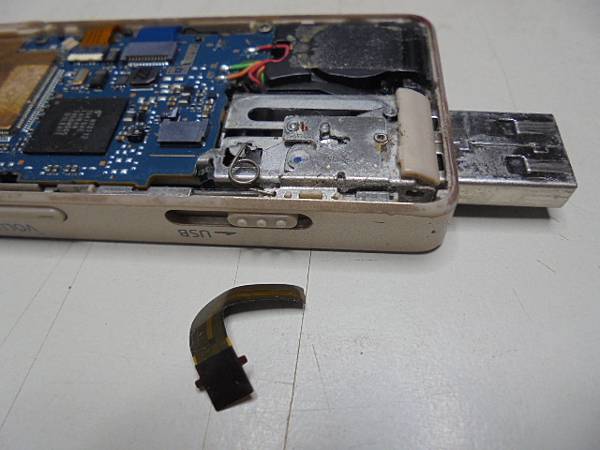 【來電詢問】SONY索尼4GB~ICD-UX560F錄音筆先前使用正常→插上USB接孔沒充電反應~接上NB亦讀不到裝置→自行將錄音檔案取出~要修好不能充電不能傳輸問題→已經由SONY索尼ICD-UX560F錄音筆裏~新北市新莊區-盧先生【取出斷裂的USB排線FPC】