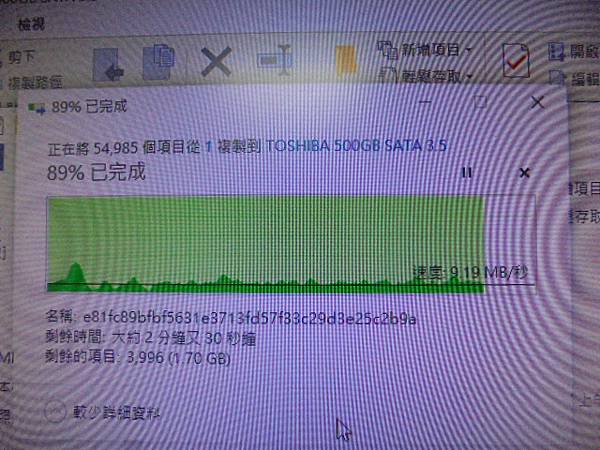 【檔案完整】TOSHIBA東芝500GB~7200轉3.5吋裸碟是公司進銷存電腦使用→正常使用時突然自動關機~重新開機後C槽D槽消失/未初始化磁碟→已救回進銷存檔案資料~將救出的檔案資料存入TOSHIBA東芝外接式硬碟→新北市鶯歌區-潘先生【89%已完成】