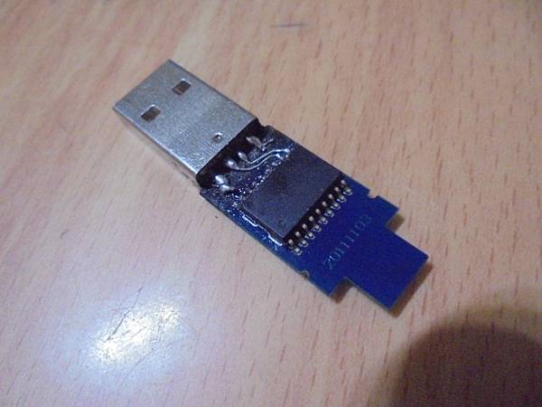 【撞斷接腳】白牌USB Key安全金鑰→必需插在店裏的營業用PC上使用~員工不慎撞到後無法讀取~導致營業用PC的版權軟體已經停擺不動~要修好USB Key安全金鑰→修復完工的USB Key電路板~新北市淡水區-邵先生【接上已連接電腦的USB Key延長線】