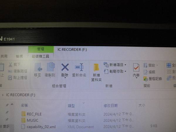 【約定送測】SONY索尼ICD-UX570F→4GB錄音筆是專錄課程錄音檔案~連接電腦讀取檔案時→USB接頭已無法讀取裝置與充電~要改接錄音筆回復傳輸檔案與正確充電→IC RECORDER(F:)內建記憶體有兩個檔案資料夾~臺北市敦化北路-郭先生【已正確讀取】