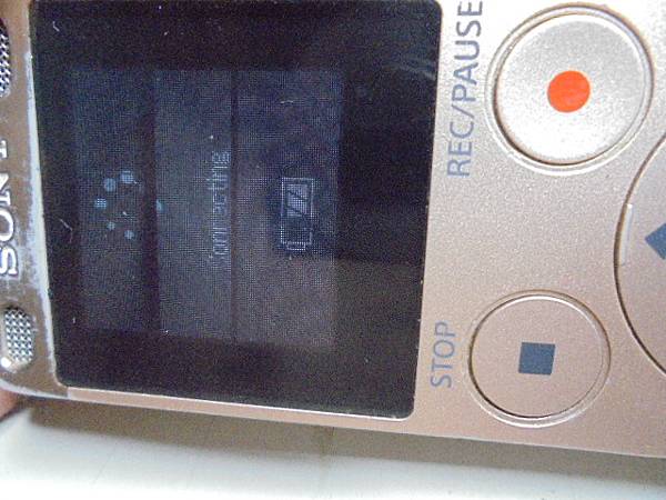 【拆殼檢測】SONY索尼ICD-UX560F→4GB錄音筆先前正常使用~插上USB接孔無充電反應→接上電腦亦讀不到裝置~自行將錄音檔案取出→要修好不能充電與傳輸問題~電池符號往左增加中→新北市新莊區-盧先生【ICD-UX560F錄音筆螢幕顯示Connecting】