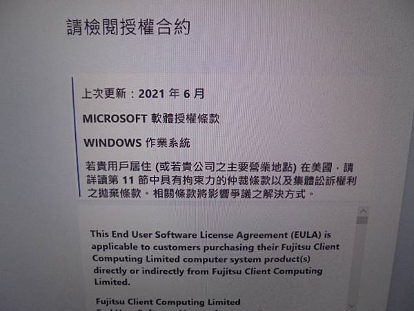 【安裝系統】FUJITSU富士通LIFEBOOK 9U13A2~UH-X筆記型電腦878g重量→公司兩位業務需求超級輕薄筆電~長時間在外或下班時帶回最輕便→或需與外國客戶聯繫~請檢閱授權合約MICROSOFT軟體授權條款→新北市新莊區-陳先生【滑鼠左鍵點擊 接受】