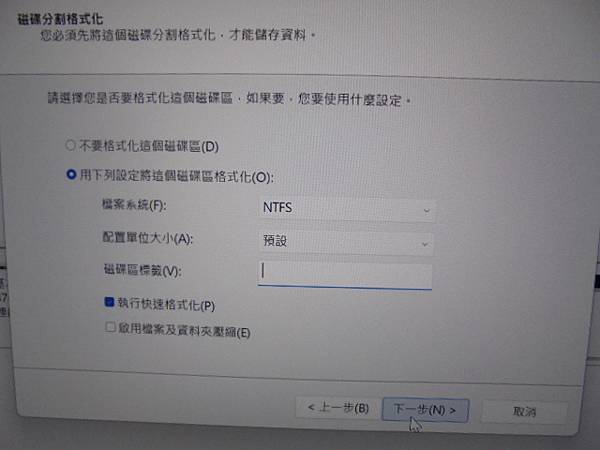 【軟體安裝】FUJITSU富士通LIFEBOOK UH-X→9U13A2筆記型電腦878g重量~公司的業務部門需求超輕薄筆電→長時間在外或下班時帶回最輕便~或需與外國客戶聯繫→用下列設定將這個磁碟區格式化(O):~新北市新莊區-陳先生【勾選執行快速格式化(P)】