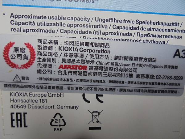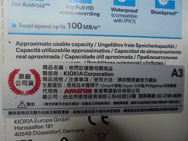 【損壞率低】KIOXIA鎧俠Micro SDXC記憶卡64GB~家裏的小米攝影機需求使用→多年前送來救援無法讀取的隨身碟救援與iPhone手機~相信並購買我推薦的儲存裝置→KIOXIA鎧俠記憶卡吊卡包裝背面貼有代理商貼紙~新北市土城區-吳小姐【富基電通】