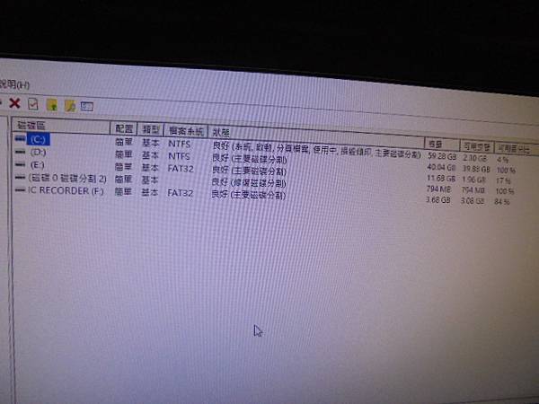 【正確充電】SONY索尼ICD-UX543F→4GB錄音筆錄了重要錄音檔案~連接電腦讀取錄音檔案→察覺USB接頭無法讀取裝置與充電~改為Micro USB接座回復正確充電傳輸→滑鼠點進存放裝置磁碟管理~臺北市忠孝東路-鄭小姐【磁碟區IC RECORDER(F:)基本】