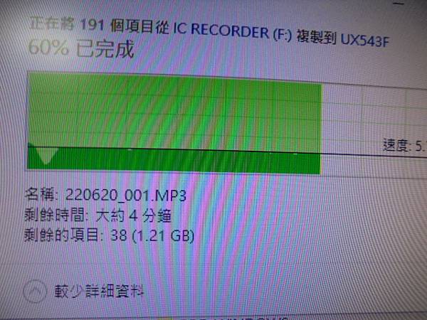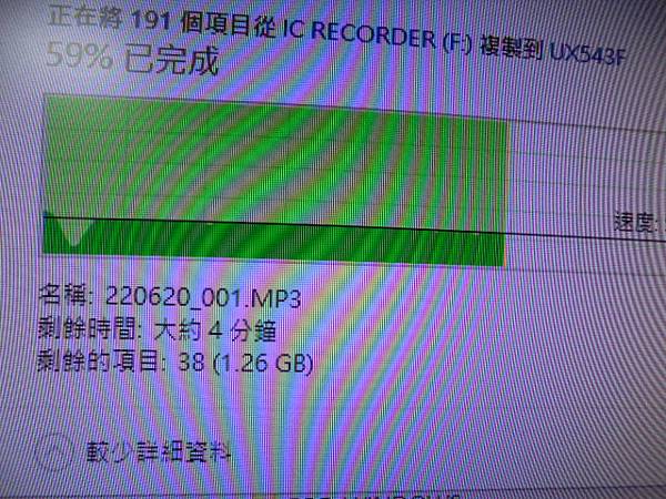 【添加LINE】SONY索尼4GB~ICD-UX543F錄音筆先前正常使用→插上USB接孔無充電反應~接上電腦亦讀不到裝置→要改為Type-C USB接座做充電/傳輸並取出錄音檔案~89%已完成正在將191個項目→桃園市桃園區-呂先生【從IC RECORDER(F:)複製到UX543F】