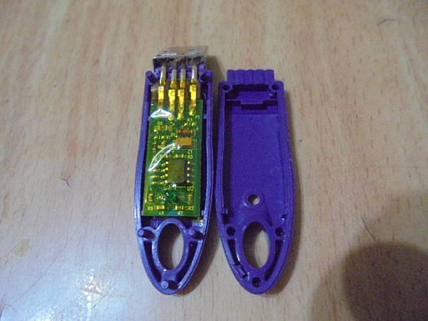 【拆殼接補】不知名品牌USB鑰匙USB Key安全金鑰→先插在KINYO耐嘉的USB HUB再接上電腦讀取~同事不慎撞歪USB接頭→導致PC無法使用~要修好這支USB Key鑰匙→由側邊挖開USB Key的塑膠外殼~臺北市中華路-李先生【是由5根塑膠卡楯扣住上下蓋】