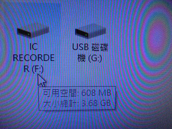 【添加LINE】SONY索尼4GB~ICD-UX543F錄音筆先前正常使用→插上USB接孔無充電反應~接上電腦亦讀不到裝置→要改為Type-C USB接座做充電/傳輸並取出錄音檔案~IC RECORDER(F:)可用空間608MB大小總計3.68GB→桃園市桃園區-呂先生【USB磁碟機(G:)】