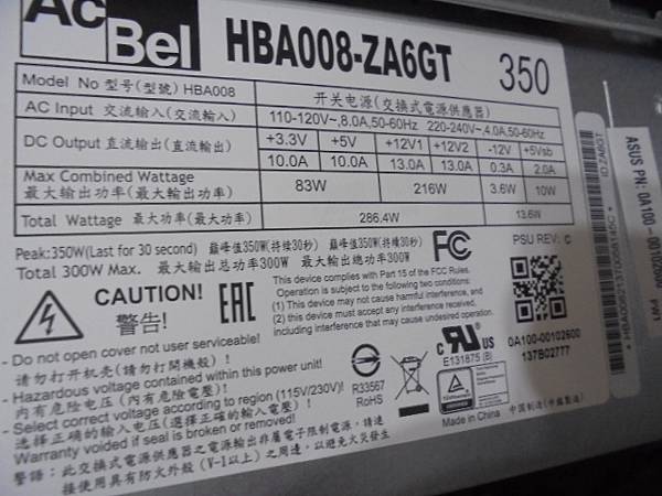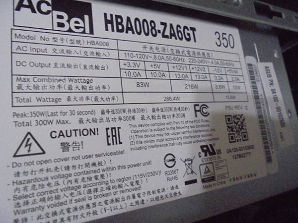 【規格需求】ASUS華碩ExpertCenter D5 Tower D500TC~桌上型電腦含Windows 10作業系統專業版→公司財務部因擴編需求購買四部電腦~供新增人員工作上使用→AcBel康舒HBA008-ZA6GT 350~新北市新莊區-王先生【Total Wattage 最大功率286.4W】