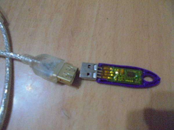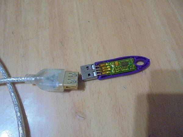【拆殼接補】不知名品牌USB鑰匙USB Key安全金鑰→先插在KINYO耐嘉的USB HUB再接上電腦讀取~同事不慎撞歪USB接頭→導致PC無法使用~已修好這支USB Key鑰匙→自USB延長線母座~臺北市中華路-李先生【緩緩拉出完成修復的USB UltraPro安全金鑰】