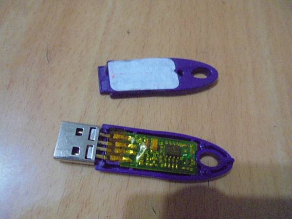 【現場完修】不知名品牌USB鑰匙USB Key安全金鑰~先插在KINYO耐嘉的USB集線器再接上PC讀取→同事不慎撞歪USB接頭~導致PC無法使用→已修好這支USB Key鑰匙~把USB UltraPro安全金鑰平放於桌面→臺北市中華路-李先生【取上蓋扣好USB Key碟身】