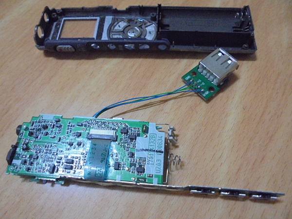 【存隨身碟】TOSHIBA東芝64MB~DMR-1800S錄音筆錄有重要的音檔→因為很多年未使用~導致USB傳輸線遺失→沒有購買USB傳輸線管道~要救出內建記憶體錄音檔案→焊接好USB接座的TOSHIBA東芝DMR-1800S錄音筆主機板~雲林縣水林鄉-陳小姐【置進底殼】