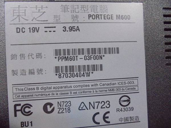 【判定問題】TOSHIBA東芝PORTEGE筆記型電腦M600→PPM60T的Windows檔案已損毀而無法進入作業系統~近期更換新工作需要用到Office軟體→要處理筆電的異常問題~東芝筆記型電腦 型號:PORTEGE M600→新北市永和區安小姐【DC 19V 3.95A 中國製造】
