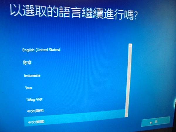 【規格需求】ASUS華碩ExpertCenter D5 Tower D500TC~桌上型電腦含Windows 10作業系統專業版→公司財務部因擴編需求購買四部電腦~供新增人員工作上使用→以選取的語言繼續進行嗎?光棒停住與選擇中文繁體~新北市新莊區-王先生【點擊 是】 【規格需求】ASUS華碩ExpertCenter D5 Tower D500TC~桌上型電腦含Windows 10作業系統專業版→公司財務部因擴編需求購買四部電腦~供新增人員工作上使用→以選取的語言繼續進行嗎?光棒停住與選擇中文繁體~新北市新莊區-王先生【點擊 是】