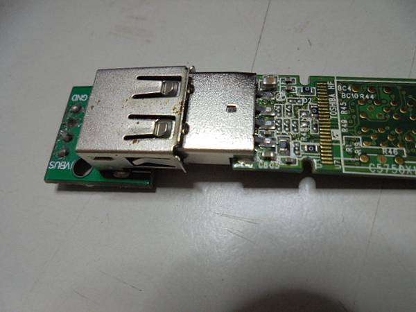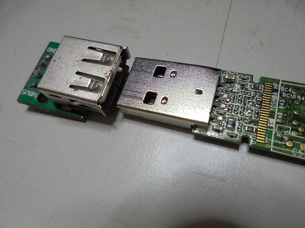【傳送照片】TDK東電化Trans-it Edge銀河8GB隨身碟→插在公司的桌上型PC讀取時不慎被撞到→踢壞USB接頭導致無法讀取→必須救回隨身碟裏工作使用的檔案資料~三用電錶量測斷裂接點後→臺北市復興南路-陳小姐【拔出TDK東電化8GB隨身碟主機板】