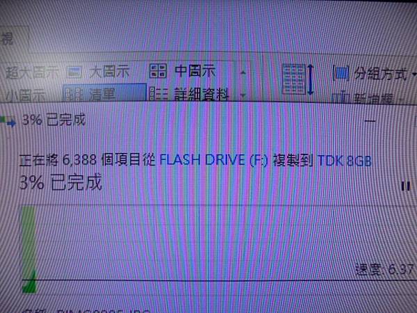 【存進新碟】TDK東電化Trans-it Edge銀河8GB隨身碟~插在公司的桌上型PC讀取時不慎被撞到→踢壞USB接頭導致無法讀取~必須救回隨身碟裏工作使用的檔案資料→3%已完成~臺北市復興南路-陳小姐【6388個項目從FLASH DRIVE(F:)複製到TDK 8GB】