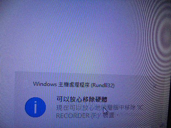 【排線斷裂】SONY索尼ICD-UX543F→4GB錄音筆先前正常使用~插上USB接孔無充電反應→接上電腦亦讀不到裝置~已改為Type-C USB接座做充電/傳輸並取出錄音檔案→點擊退出IC RECORDER(F:)~桃園市桃園區-呂先生【現在可以放心地由電腦中移除裝置】