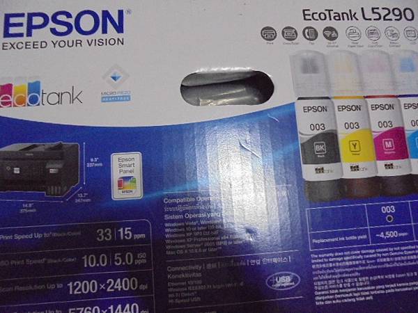 【廠商到貨】EPSON愛普生L5290雙網四合一智慧遙控傳真連續供墨複合機→公司人事部需求噴墨印表機~選購連續供墨機型利於列印彩色報告→指名EPSON愛普生品牌~原廠紙箱EPSON EXCEED YOUR VISION ecotank→新北市板橋區-林先生【EcoTank L5290】