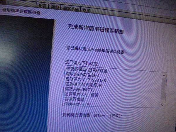 【存進新碟】TDK東電化Trans-it Edge銀河8GB隨身碟~插在公司的桌上型PC讀取時不慎被撞到→踢壞USB接頭導致無法讀取~已經救回隨身碟裏工作使用的檔案資料→檔案系統(F):FAT32~臺北市復興南路-陳小姐【完成新增簡單磁碟區精靈 點擊下一步】