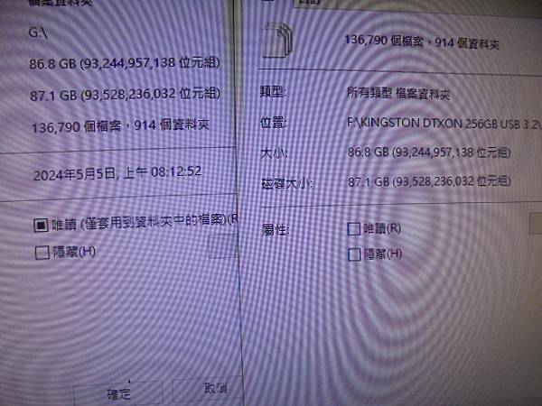 【剪開外殼】Kingston金士頓DataTraveler EXODIA ONYX→256GB隨身碟USB 3.2存進超多圖檔~昨天使用時插上電腦出現USB裝置無法辨識→已救出隨身碟裏的圖檔資料→比對兩個磁碟~新北市板橋區-吳先生【均為136790個檔案914個資料夾87.1GB磁碟大小】