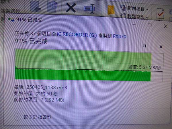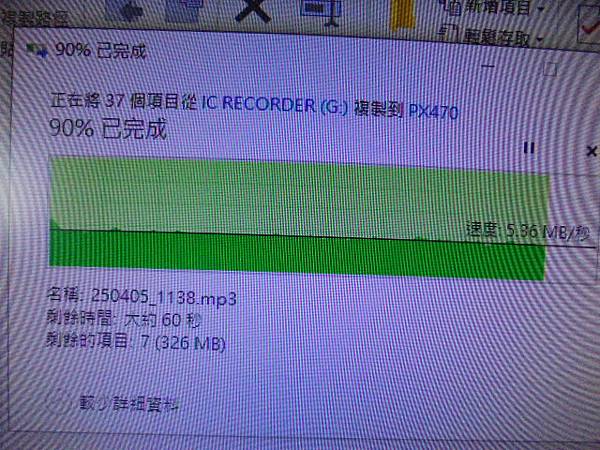 【連接電腦】SONY索尼4GB~ICD-PX470錄音筆錄有重要錄音檔案~使用完畢放在包包裏拉鍊未拉~被家裏小狗由包包中叼出錄音筆猛咬→要救回談話證據的錄音檔案~90%已完成 正在將37個項目從IC RECORDER(G:)→臺北市長春路-田先生【複製到PX470】