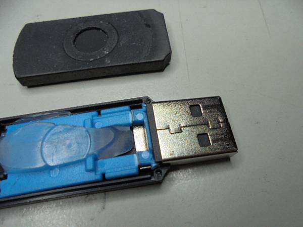 【現場拆殼】pqi勁永8GB隨身碟U273~插在桌上型電腦前置USB接座使用→不慎撞到後導致PC無法讀取隨身碟~有重要檔案資料存在隨身碟→想修好隨身碟救出重要檔案~將隨身碟電路板模組含透明霧狀機構件→新北市永和區-李先生【滑進金屬外殼裏】