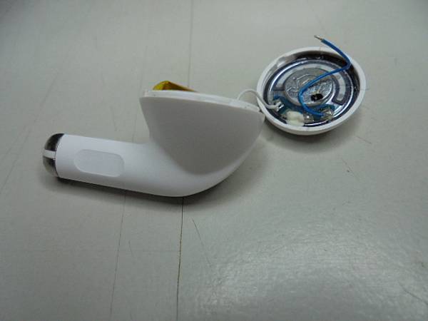 【喇叭斷線】RECCI銳思REP-W81雅音TWS無線藍牙耳機~購買後使用了幾個月的耳機~不慎掉落地面後外殼裂開~自行拆殼時扯斷喇叭的接線~要修好Earphone的喇叭~確認L左側黏貼耳機上蓋的喇叭線已經斷裂→新北市中和區-張先生【藍色的喇叭接線】