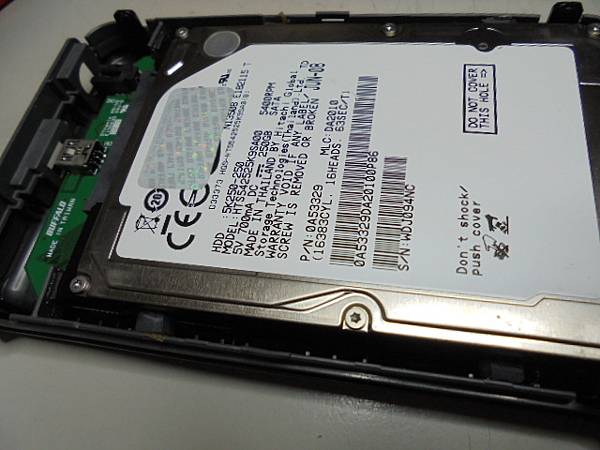 【放棄救援】BUFFALO巴比祿MiniStation~250GB外接式硬碟接上筆記型電腦讀取→突然就讀不到這顆外接式磁碟~前幾天都是正常使用→想救回重要的照片/文件檔案~確認HITACHI日立250GB裸碟含轉接電路板牢固→新北市新店區-郭先生【已蓋回底蓋】
